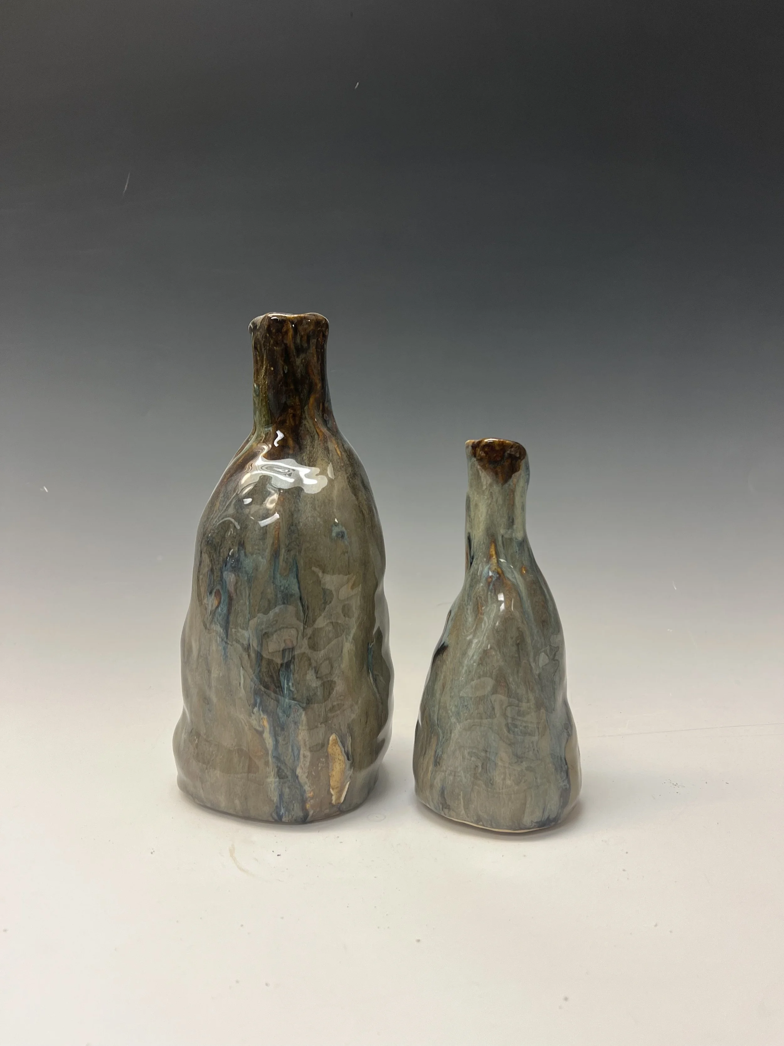 The smaller green vases was one of my first vases I threw on the wheel. I used metallic green and aurora but I wish it came out more matte.