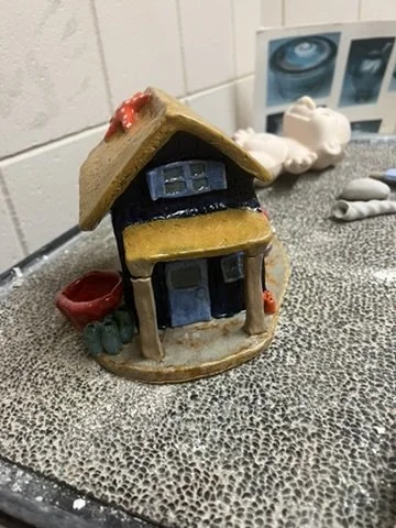 Random objects I made including an inscenes holder, beach house for Marty, and a tooth brush holder for my mom.
